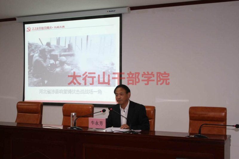 培訓中,涉縣縣委書記汪濤以《爭做忠于黨、敢擔當、善創新、扛硬活的優秀共產黨員和錚錚鐵骨漢》、開國元勛陳賡大將之子陳知建以《重溫老一輩革命家抗戰歷史及革命精神》、我院客座教授、涉縣原人大副主任牛永芳以《重溫革命初心,弘揚太行精神》為題分別為大家作了主題教學。